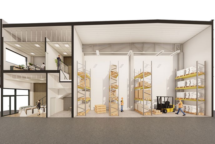 Thanks to their multifunctionality, SBU projects are available to tenants from many industries. In addition to warehouse space, the components of the popular SBU also include office space and, often, commercial space.